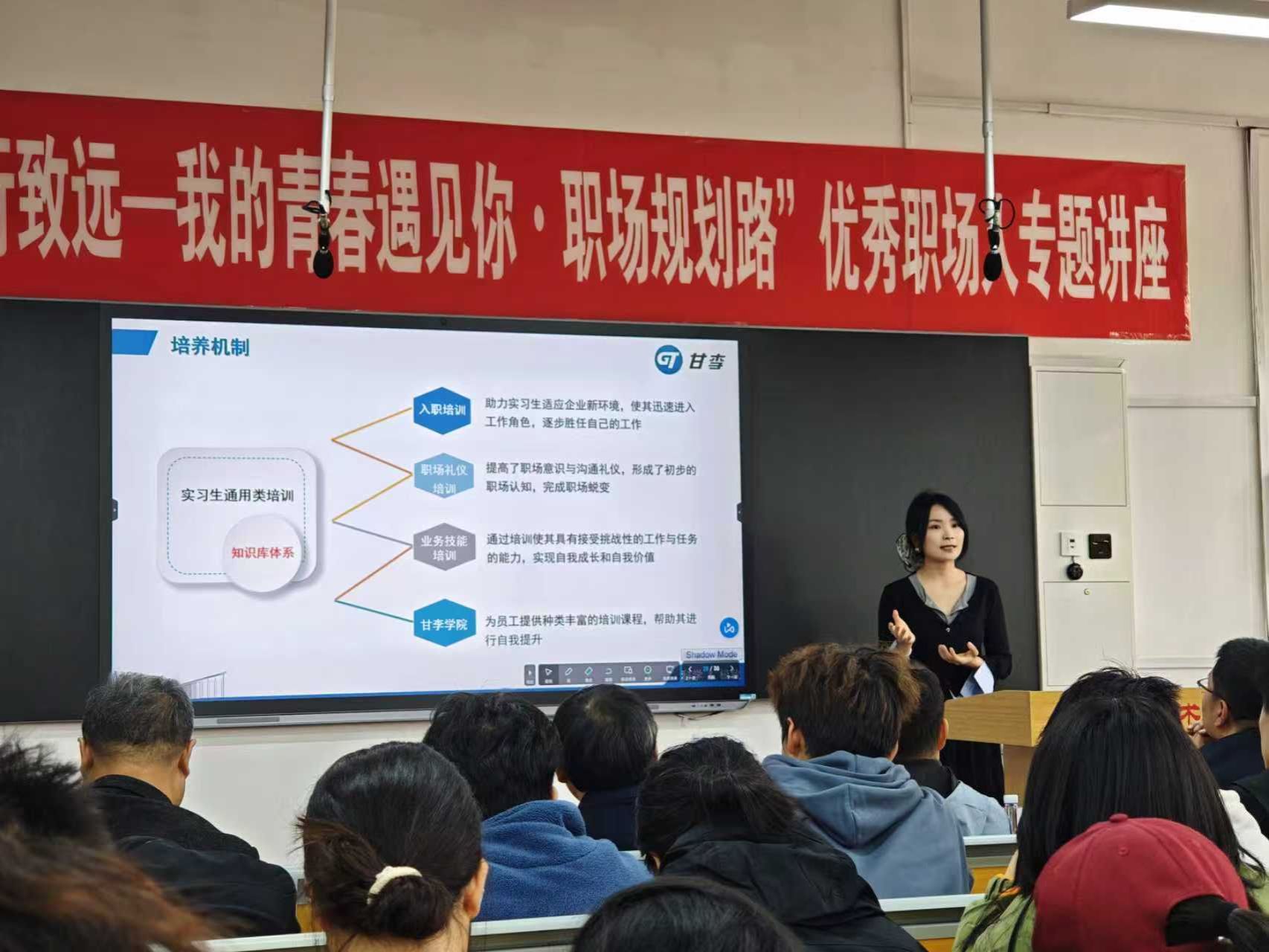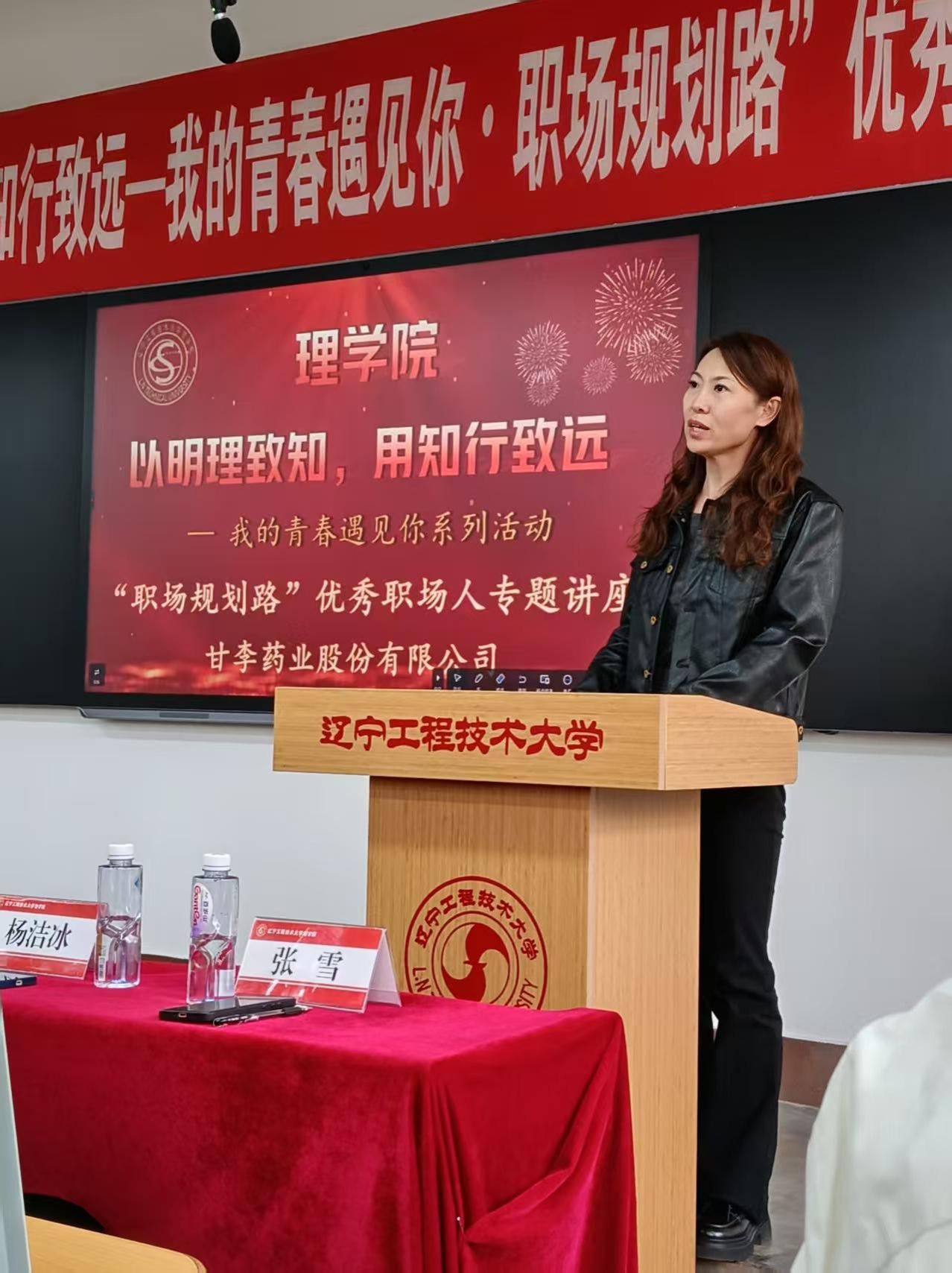 为深化校企合作,拓展学生就业渠道,帮助学生精准把握职业发展路径,构建职业规划。10月15日下午,由理学院组织的名为“以明理致知,用知行致远——我的青春遇见你·职场规划路”优秀职场人专题讲座在新华楼202教室成功举行。本次讲座的嘉宾是上市公司甘李药业有限公司人力资源部经理李宁超,学院党委书记沈浩、院长杨鑫、教师代表以及生物工程系2022级、2023级、2024级全体学生参加了此次活动。活动由学院党委副书记张雪主持。