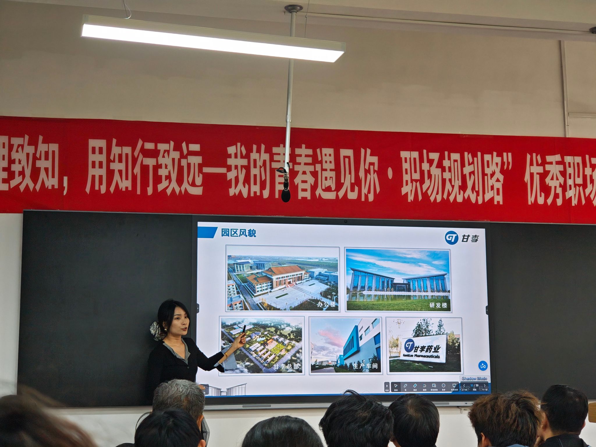 随后,李宁超经理向大家介绍了甘李药业有限公司的发展历程、卓越的业内成绩、人性化的员工管理体系,并着重介绍了公司的人才培养机制。同时从用人单位的角度,与全体学生分享了企业最需要什么样的人才,对学生如何充分利用在校的学习时光增长自身的知识和能力给出了建议。最后李经理现场与学生以互动的方式进行了深入的交流,就同学们如何能够在职场中修炼自身能力提出建议,鼓励大家要养成良好的生活习惯和学习习惯。她希望同学们能清晰自身定位,找寻能够提升自身能力,展现自身特色的职业平台。李经理代表甘李药业公司现场表示,辽宁工程技术大学生物工程专业的学生是公司招聘人才的目标院校,此次将在前期合作的基础上再次从生物工程专业2022级学生中遴选10名优秀学生到公司进行顶岗实习。