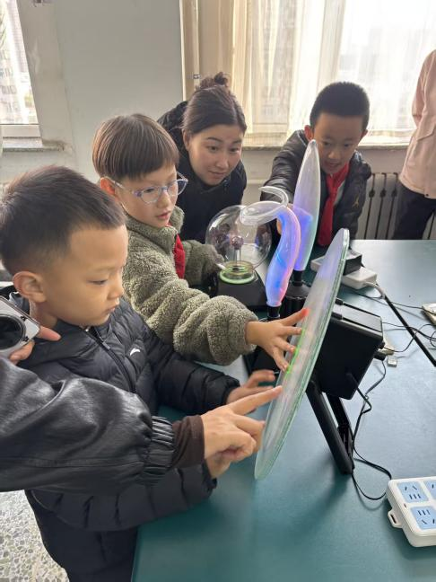 物理实验室:妙趣横生,解锁物理奥秘。走进物理实验室,孩子们瞬间被各种实验装置吸引。在老师的引导下,他们沉浸在探索的乐趣中,亲手操作简易实验装置,直观感受力学、电学的奇妙原理。专业教师们化身“科学魔法师”,将复杂的物理知识转化为一个个有趣的“魔术”。“会跳舞的小磁针”“能吸起铁钉的线圈”“无弦琴”等小实验,让孩子们目不暇接。老师们耐心地讲解牛顿摆的原理,展示光的折射让小球消失的物理小魔术,将电磁、力学、光学等抽象原理变得可感可触。孩子们的好奇心被彻底激发,现场提问声此起彼伏。老师们边讲解边示范,还为每位同学准备了亲手制作的实验小道具,让大家实现“边听、边学、边动手”,将抽象的科学知识转化为生动的亲身体验。